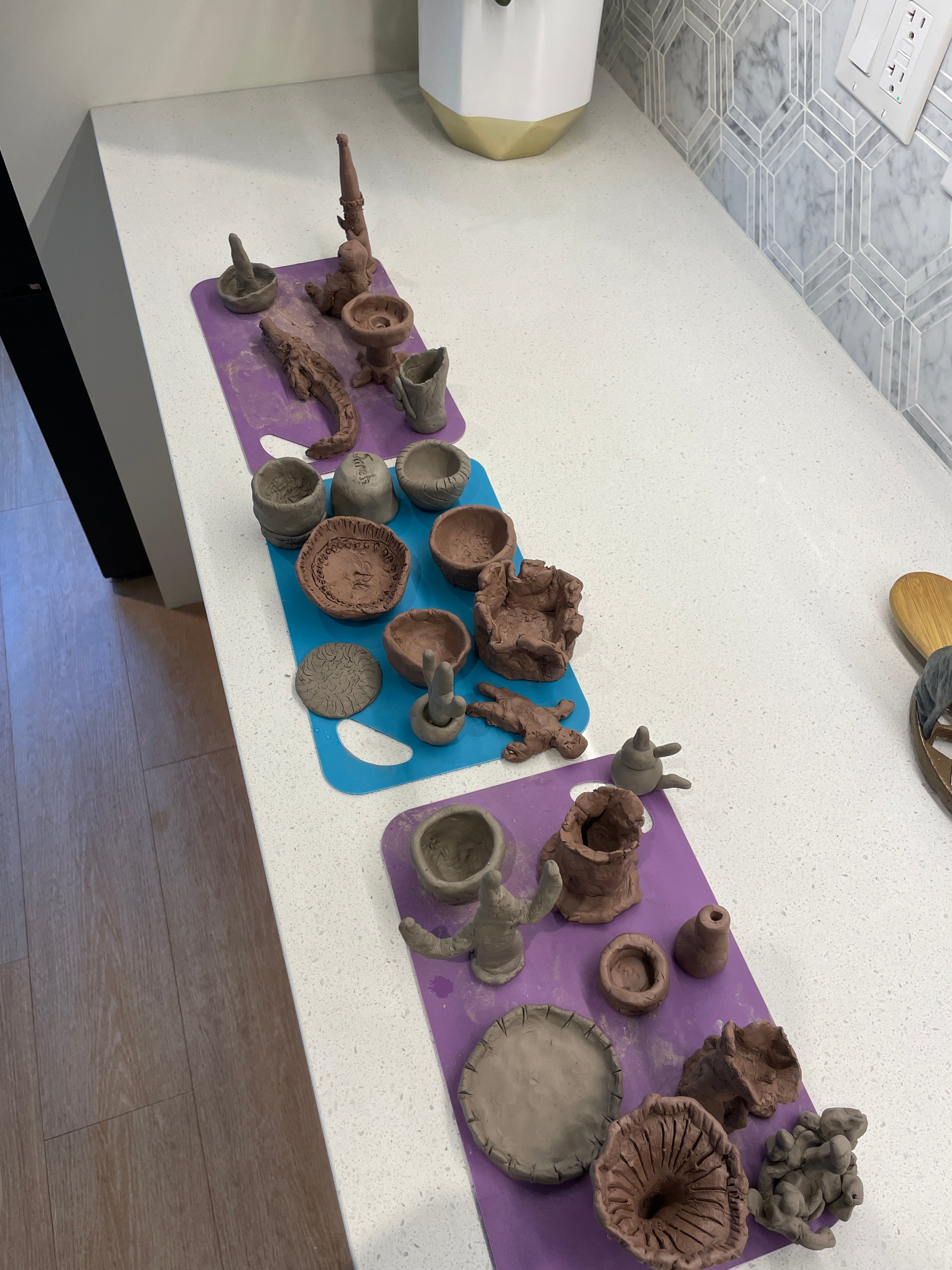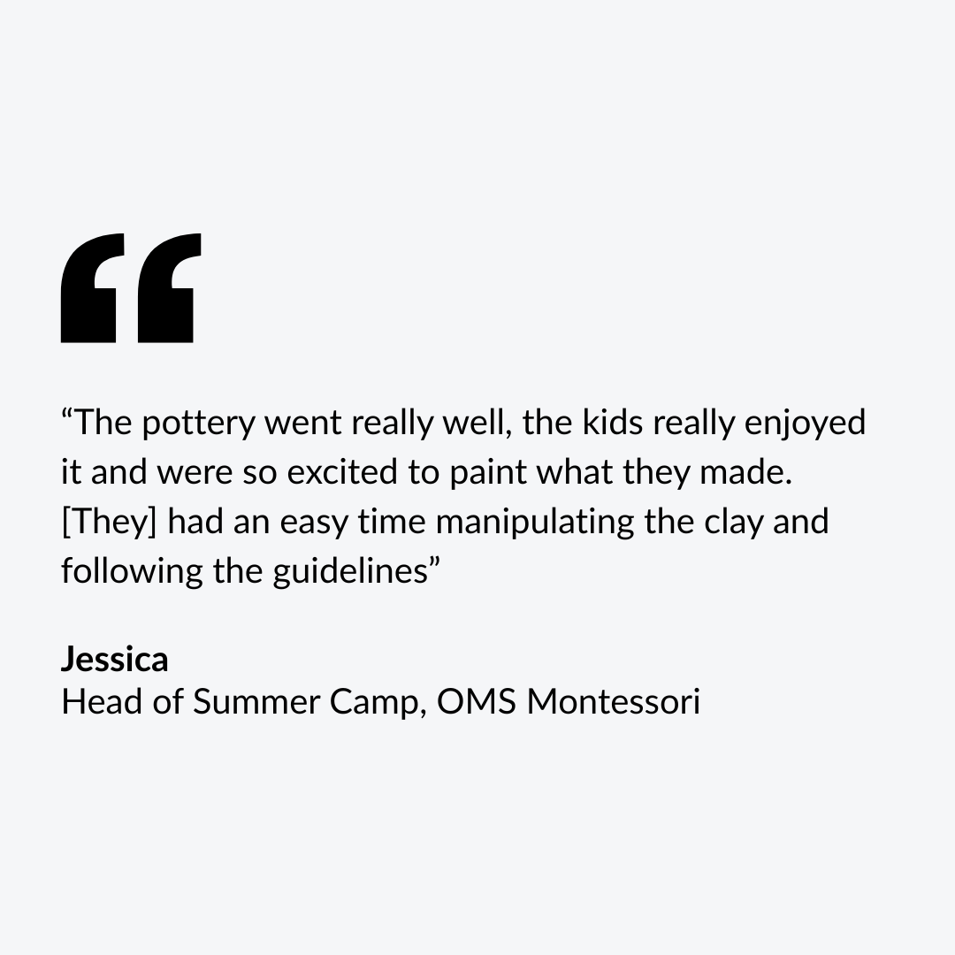 We show up with clay, tools, mats and everything else needed.